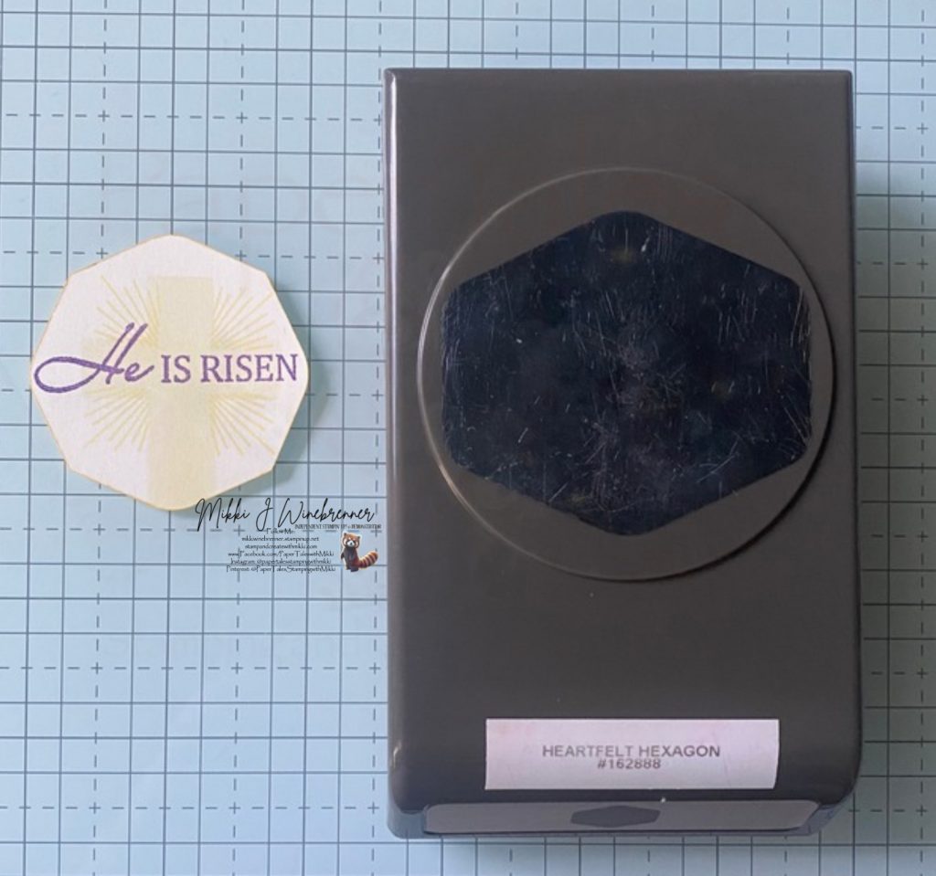 - Punch the sentiment out with the Heartfelt Hexagon Punch. Do this twice – once up and down and again side to side.