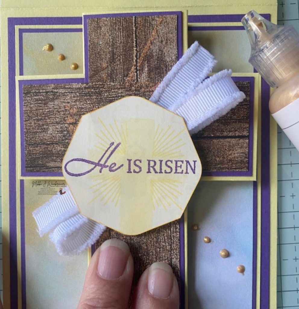 - Attach the cross piece to the Lemon Lolly Base. Add a few dots of Gold Metallic Enamel Effects to the upper left and lower right sides of the cross and a swallow if you choose.