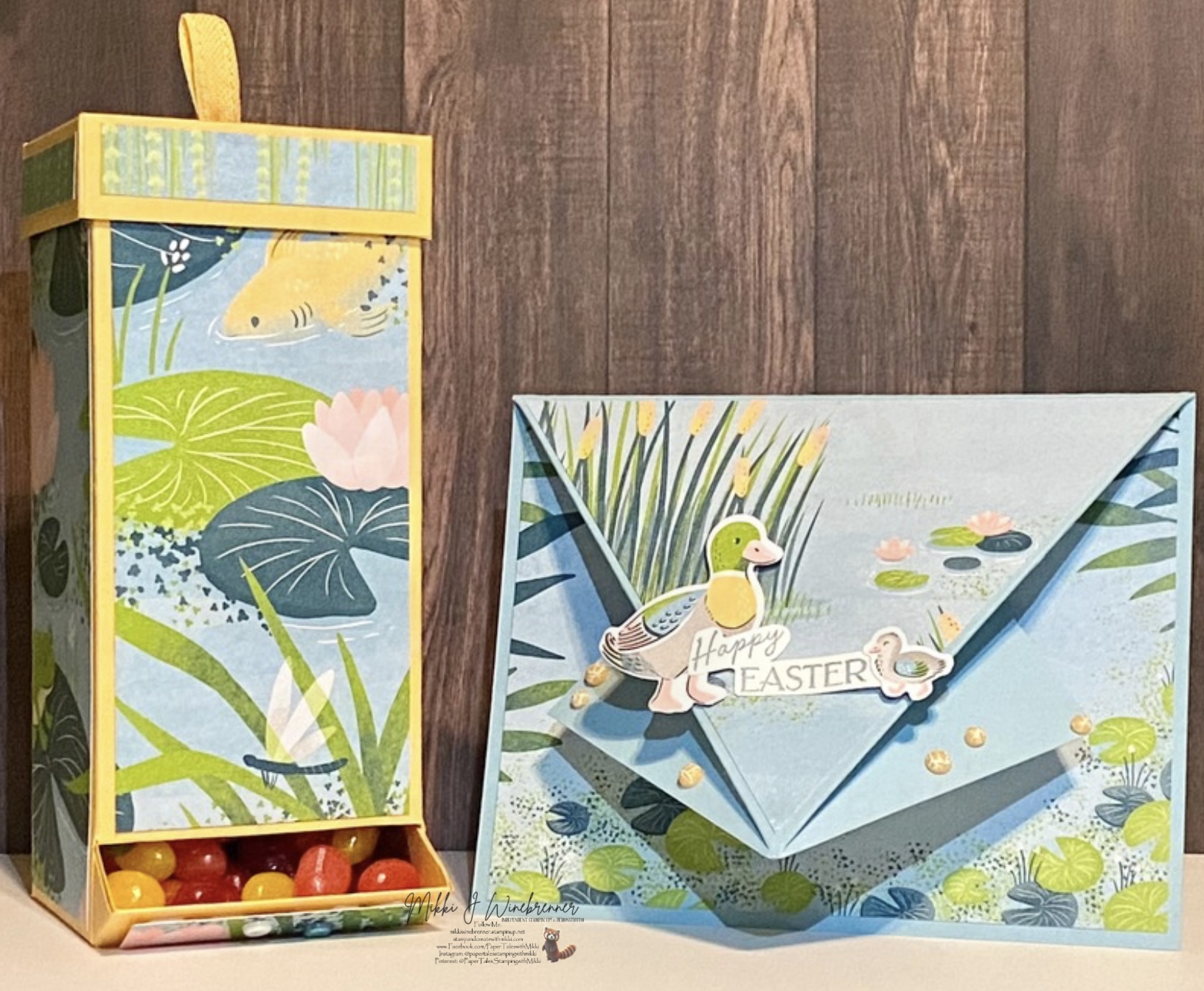 Tonight we will be working with Stampin’ Up! Lily Pond Lane Suite Collection creating an Arrow Fold Card as well as a Candy Dispenser!