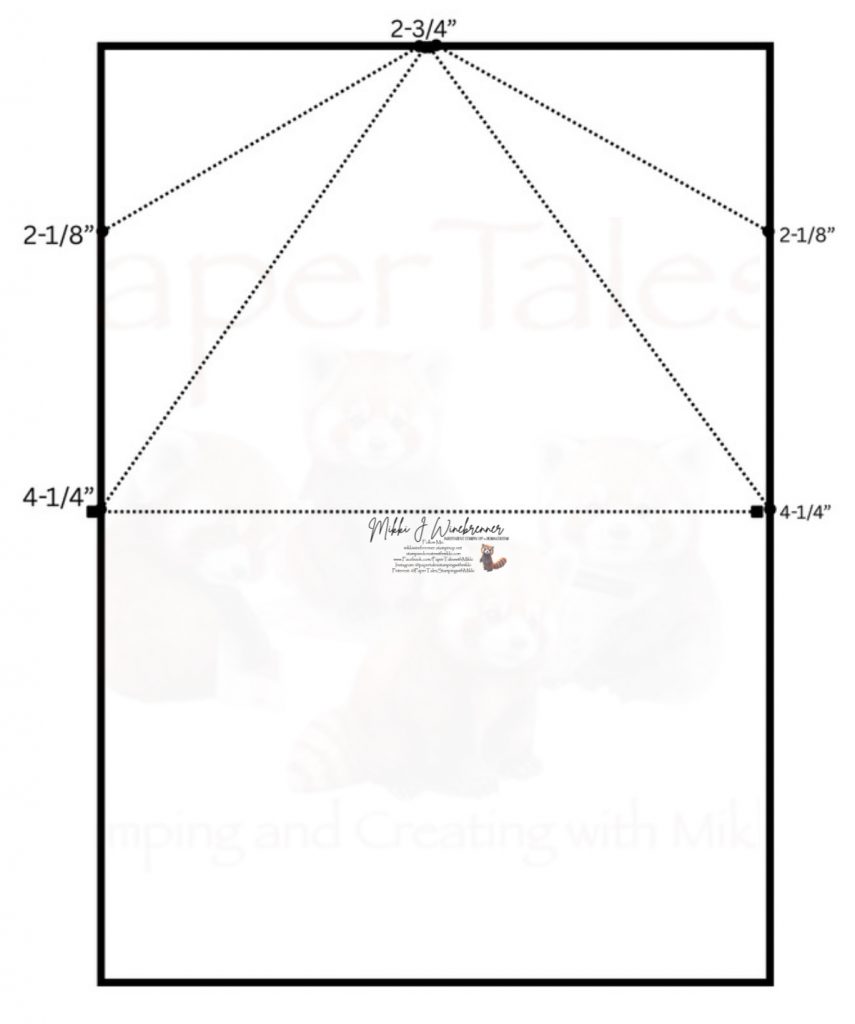 • You will want to mark one of the DSP panels – the one you are using for the card front- and the Basic White panel at 2-5/8” on the long side an cut a diagonal line from the corner to the marker. See template below!