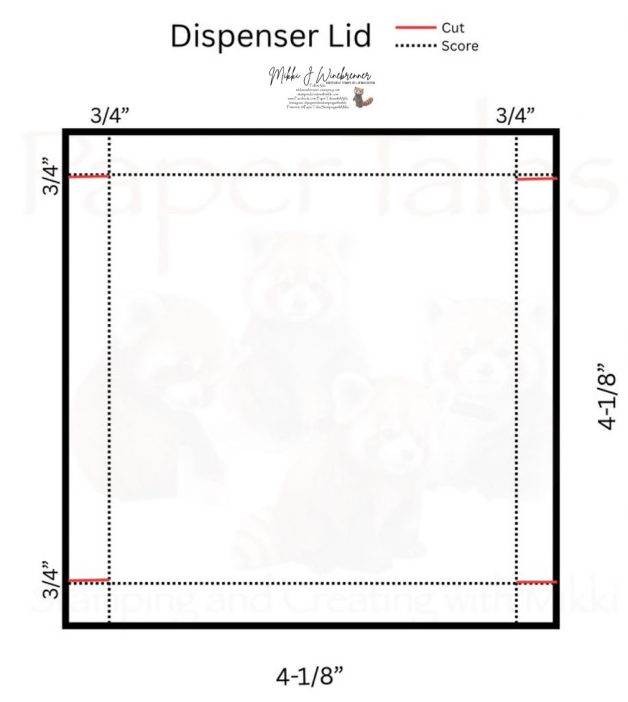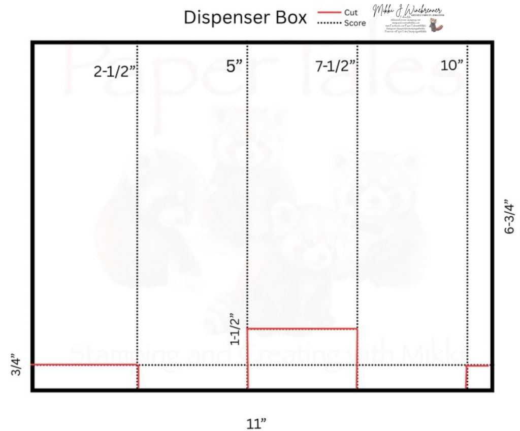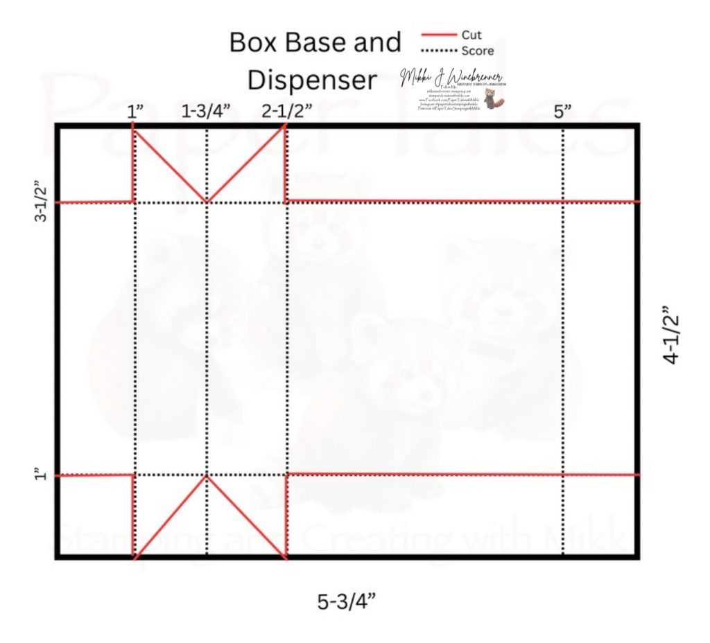 • Score the top portion of the card by marking 2-3/4” on the 5-1/2” edge and at the 2-1/8” on both sides of the 4-1/4” side. See template below!