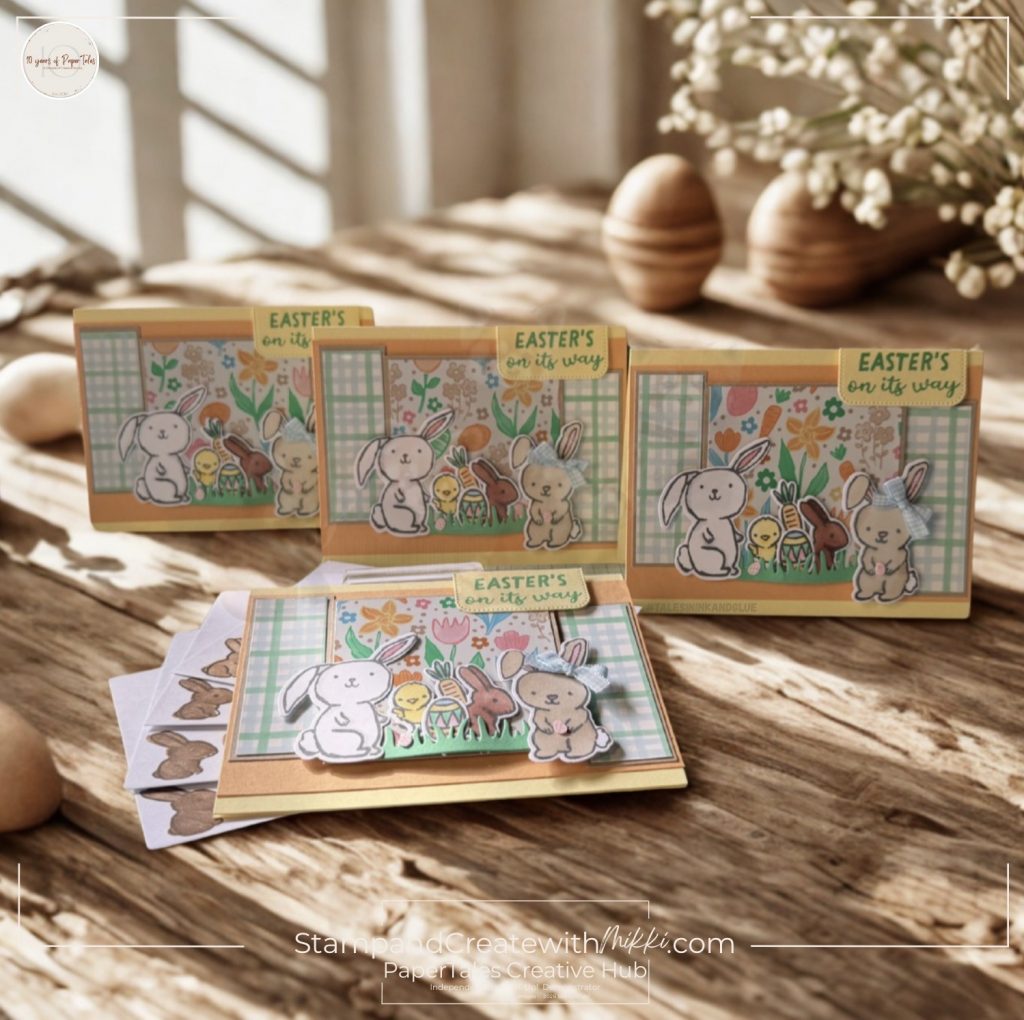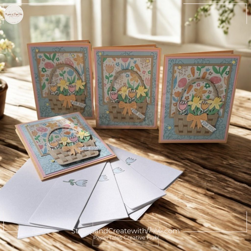 Start with one sheet of patterned paper, follow a cutting template, and then use the pieces to build multiple card designs. It’s a fun way to create a whole stack of cards while exploring different layouts and embellishment ideas.