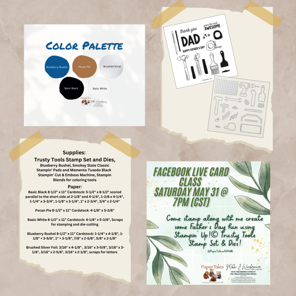 I hope this has inspired you just a little bit for a fun card for all those DAD’s out there! Thank you for spending your Saturday with me and we will see you June 28th 7p (CST) for our next Card Class!