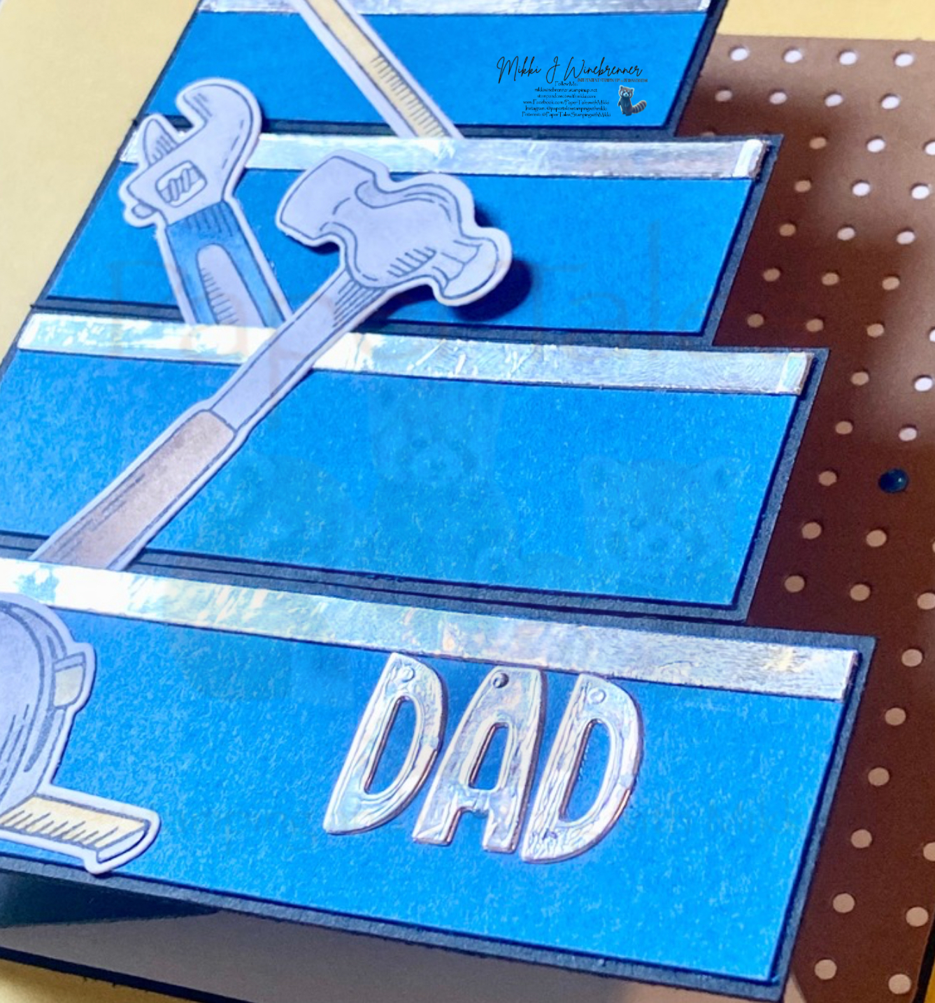 This Trusty Tools Toolbox Fun Fold Card was inspired by my dad and his collection of tools! I even called him to make sure my scheme was “tool appropriate”! Love You Dad!