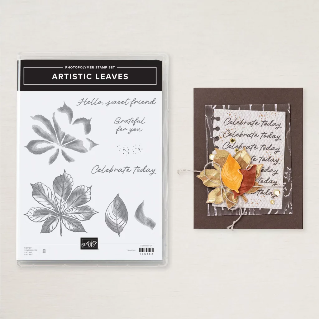 Tonight I will be using Stampin’ Up! Artistic Leaves Stamp Set which can be found at the store in the Online Exclusives!