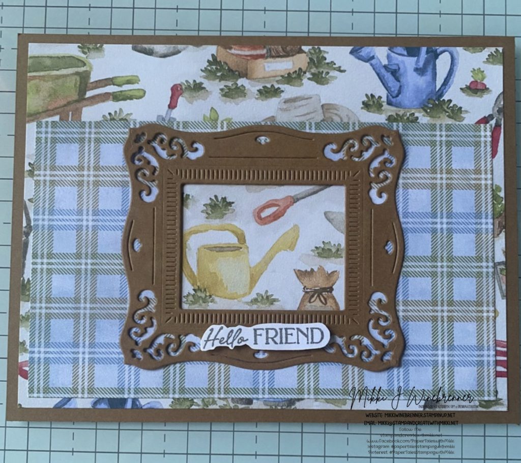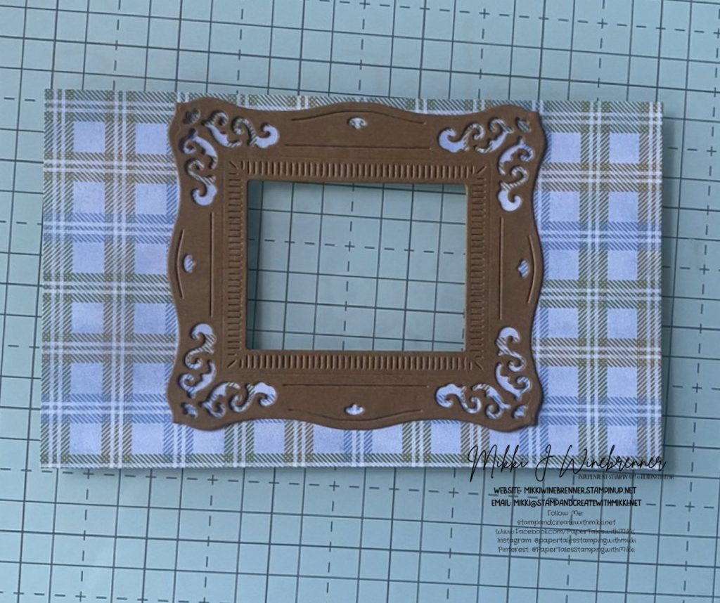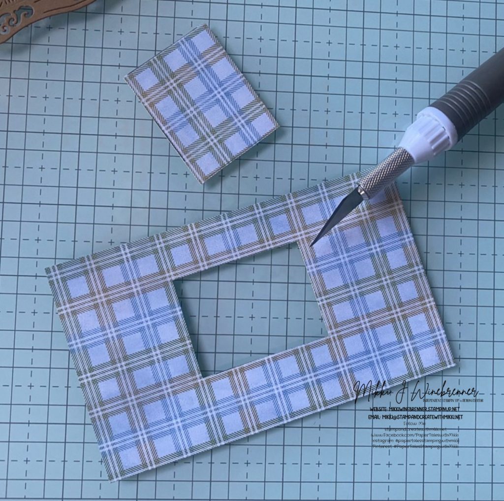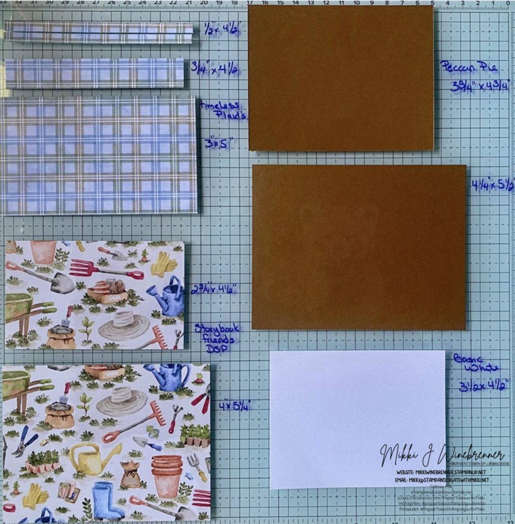 Colors that I am using are: Pecan Pie 8-1/2” x 11” Cardstock, Basic White 8-1/2” x 11” Cardstock, Storybook Friends 12” x 12” Designer Series Paper and Timeless Plaid 6” x 6” Designer Series Paper.
