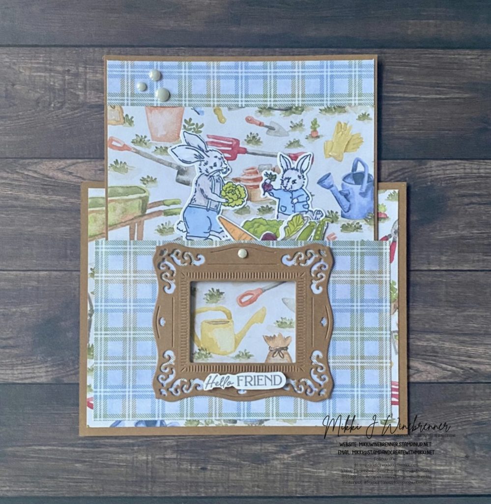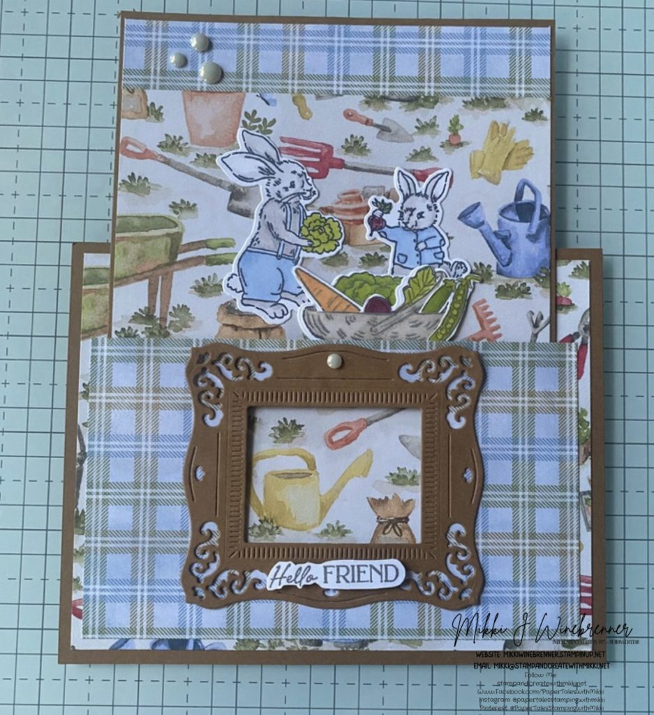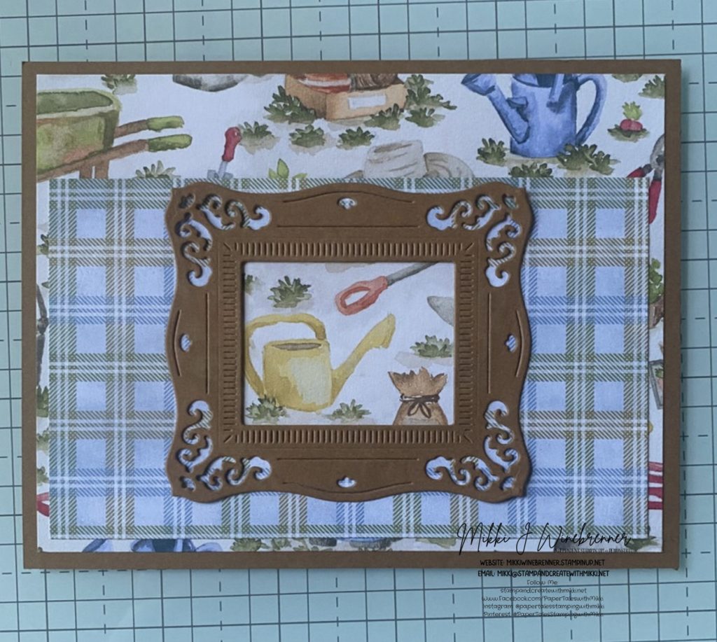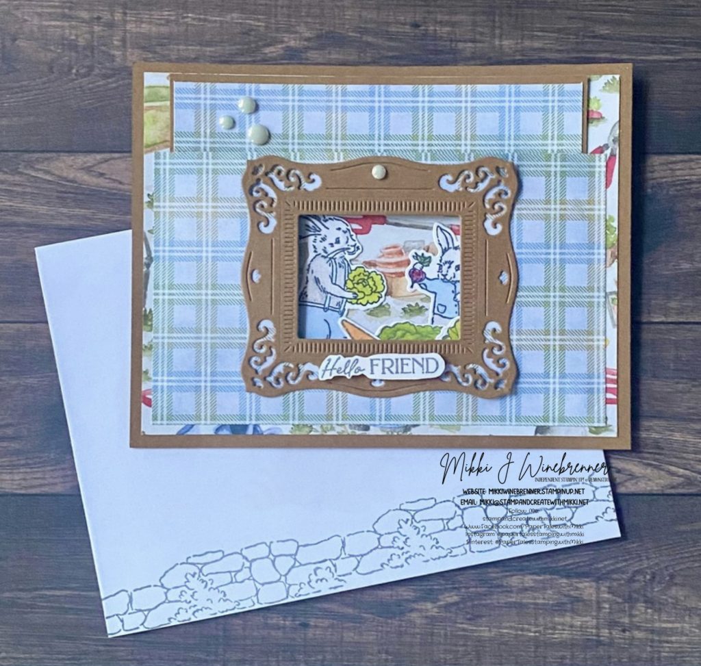 Colors that I am using are: Pecan Pie 8-1/2” x 11” Cardstock, Basic White 8-1/2” x 11” Cardstock, Storybook Friends 12” x 12” Designer Series Paper and Timeless Plaid 6” x 6” Designer Series Paper.