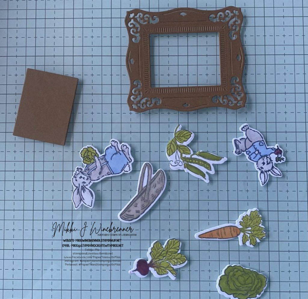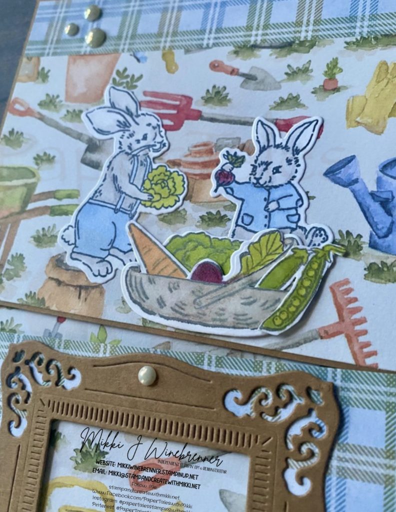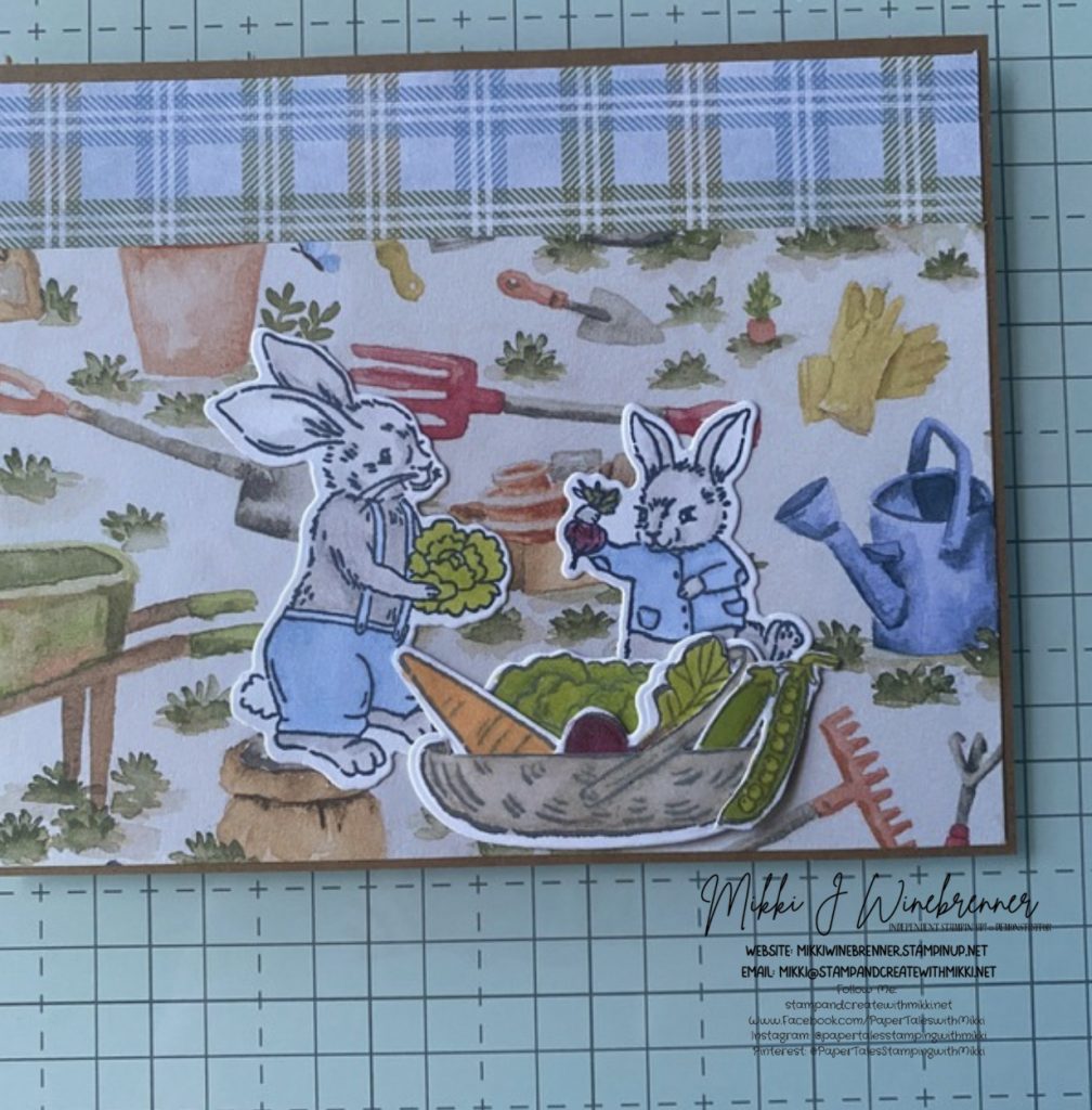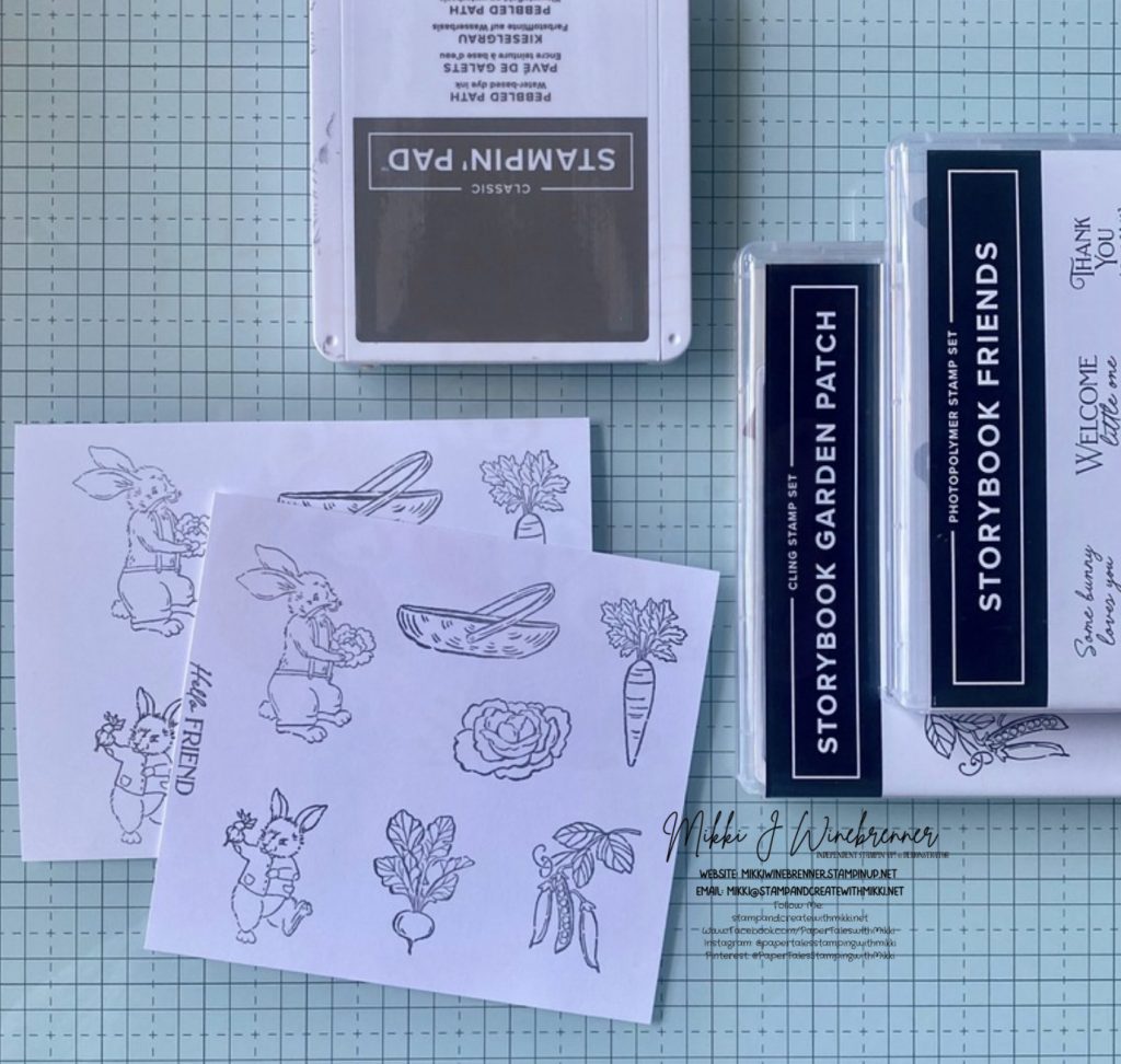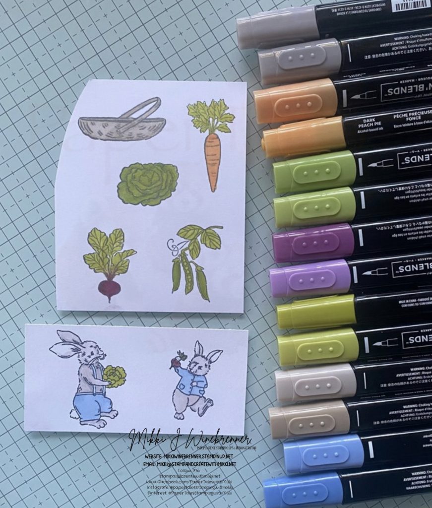 Stampin’ Blends Combo Packs used: Gray Granite, Peach Pie, Granny Apple Green, Blackberry Bliss, Lemon Lime Twist, Crumb Cake and Boho Blue. I was going to add in some Petal Pink in the bunny ears but forgot.