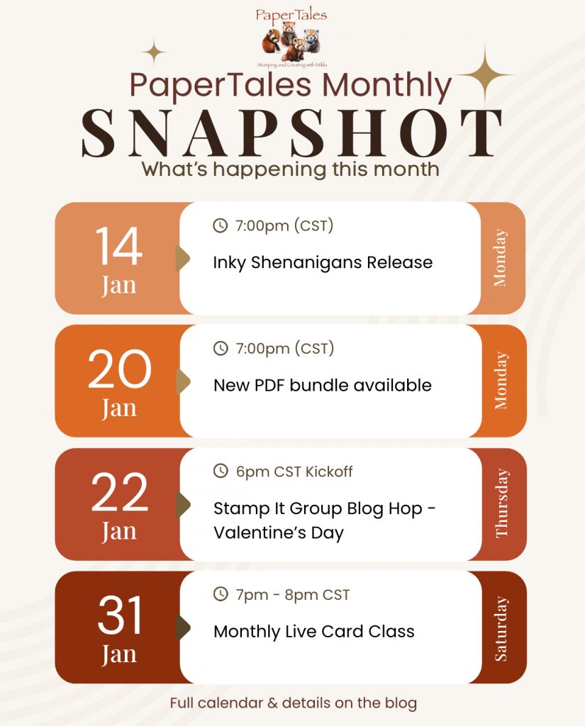 As we kick off the new year here at PaperTales, I wanted to make it easier than ever for you to stay in the loop — without the overwhelm. Creativity should be fun, not confusing, and knowing what’s coming up helps us all plan a little better (even if chaos is still part of the process 😉).